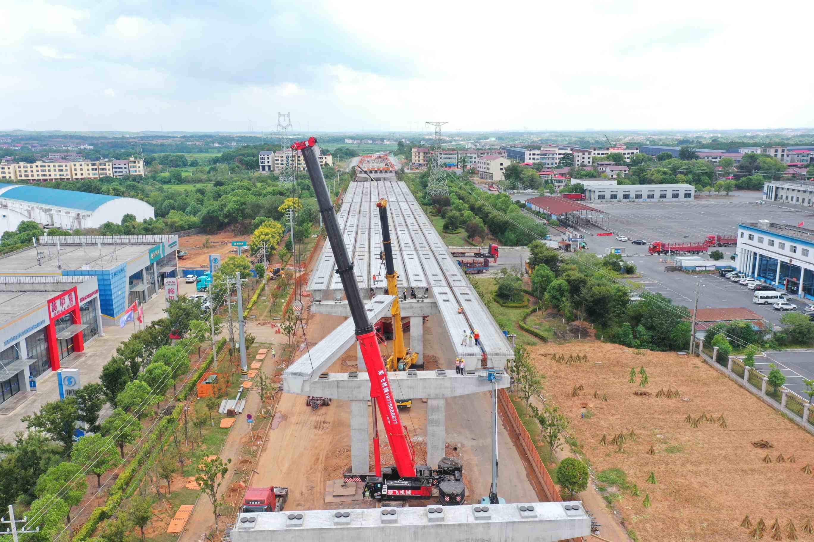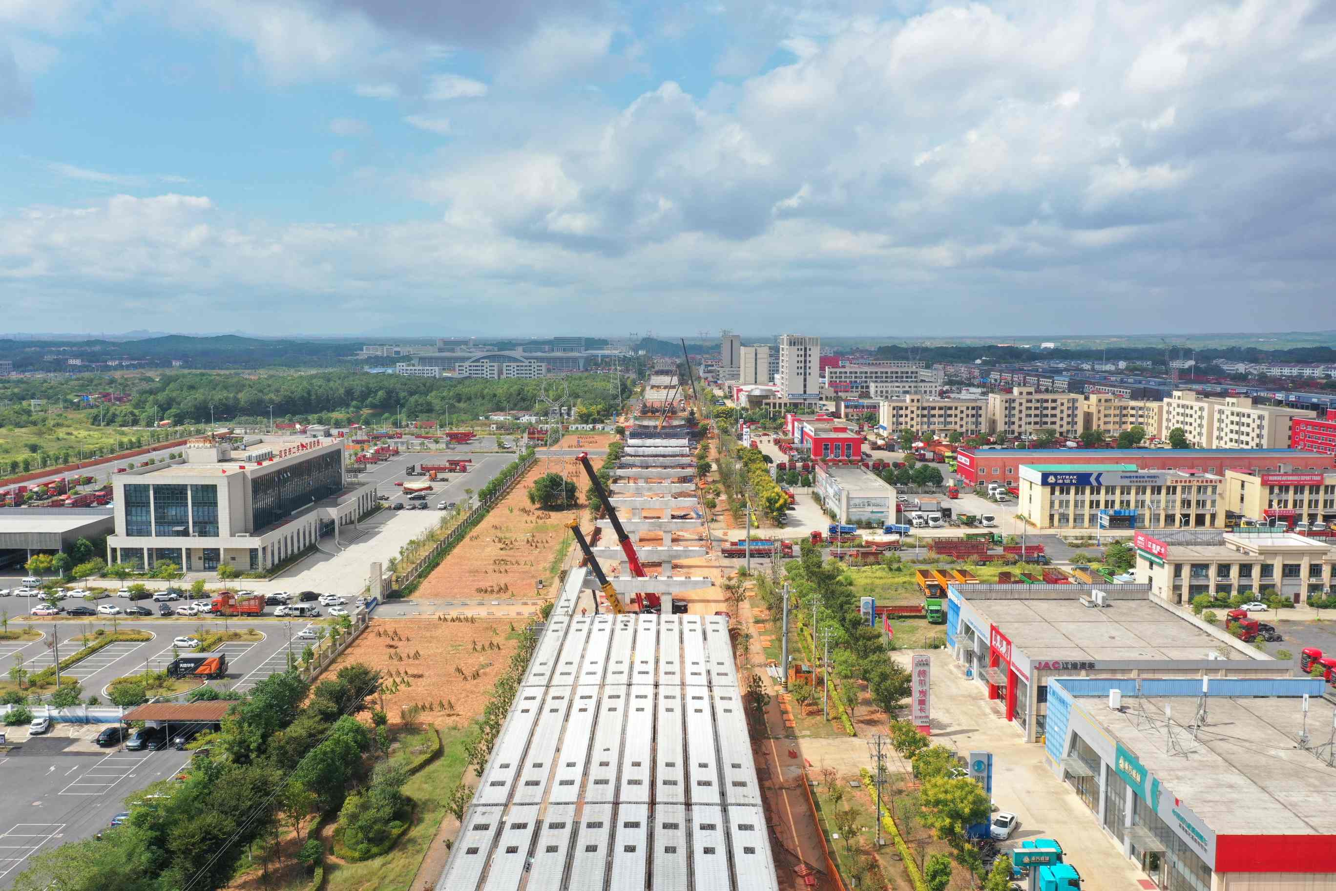 G320高安境內(nèi)改線項(xiàng)目工程建設(shè)“加速跑”,森澤大道高架互通梁板架設(shè)如火如荼 ——森澤大道高架互通上部結(jié)構(gòu)施工進(jìn)入攻堅(jiān)沖刺階段